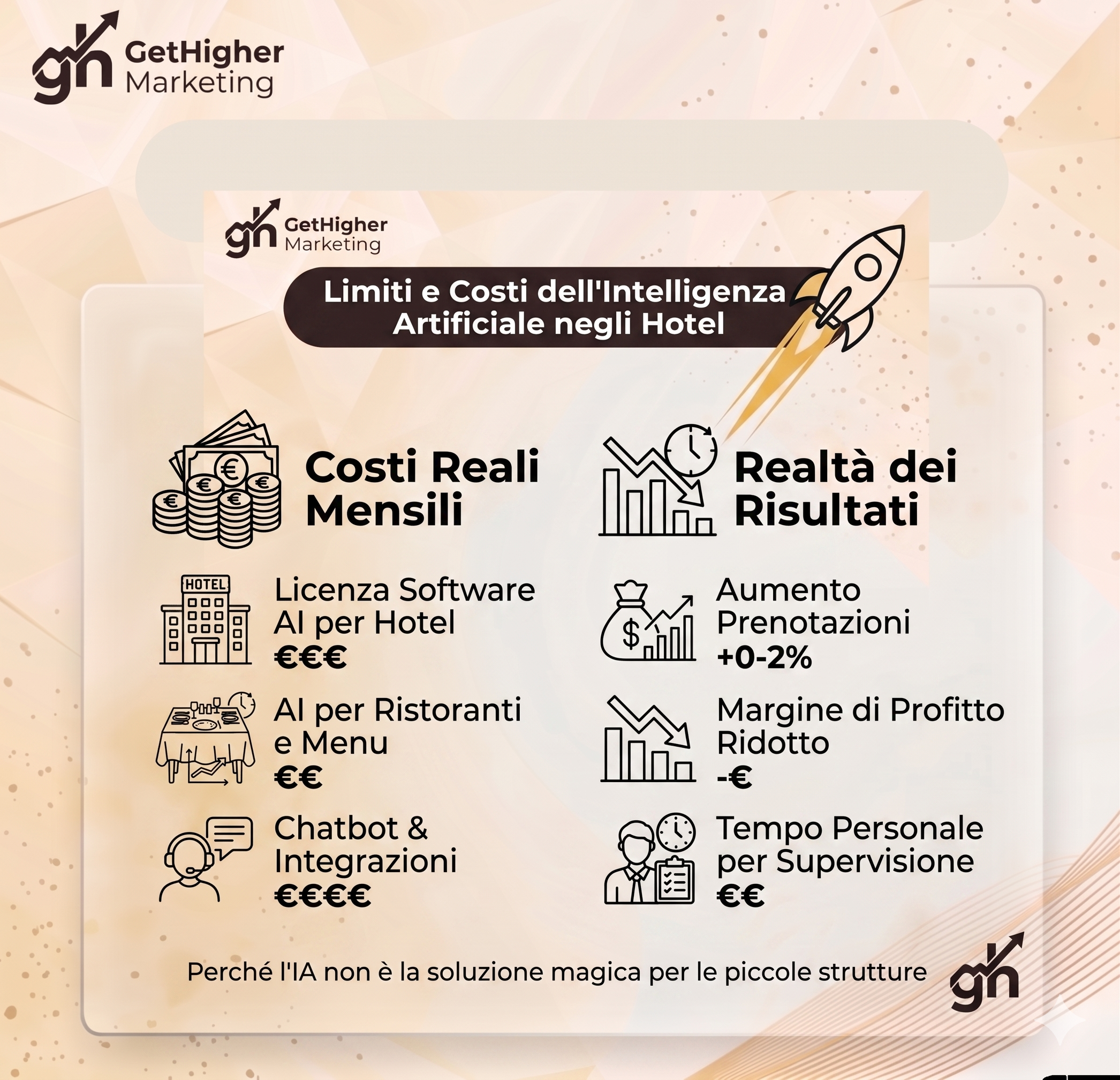 L'evoluzione tecnologica non si fermerà e, prima o poi, l'Intelligenza Artificiale diventerà una commodity economica, affidabile e "plug-and-play" anche per le micro-imprese. Ma oggi, nel mercato attuale, per i Piccoli Hotel, i Boutique Hotel, i B&B e i Ristoranti i costi di implementazione dell'AI superano di gran lunga i benefici reali, portando a una pericolosa standardizzazione del servizio.